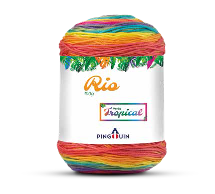 O fio Rio já é conhecido pelo seu efeito visual marcante. Ele possui um tingimento especial que cria padrões listrados automaticamente, formando combinações de cores vibrantes conforme o trabalho avança.