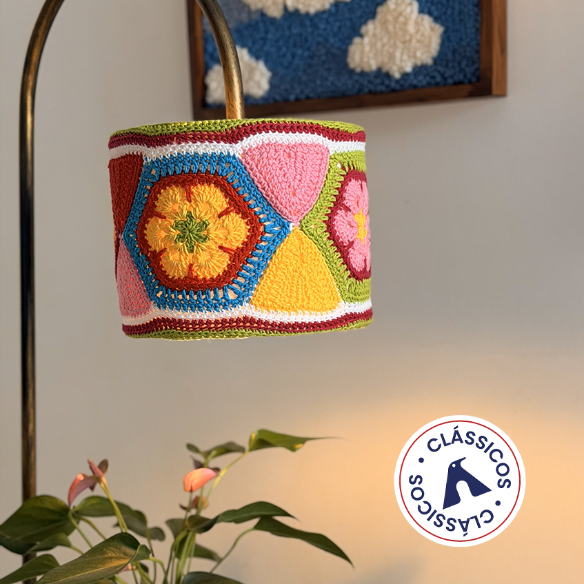 E quando um objeto icônico ganha versão em crochê ou tricô, ele deixa de ser só funcional. Ele vira ponto focal e assinatura do espaço.