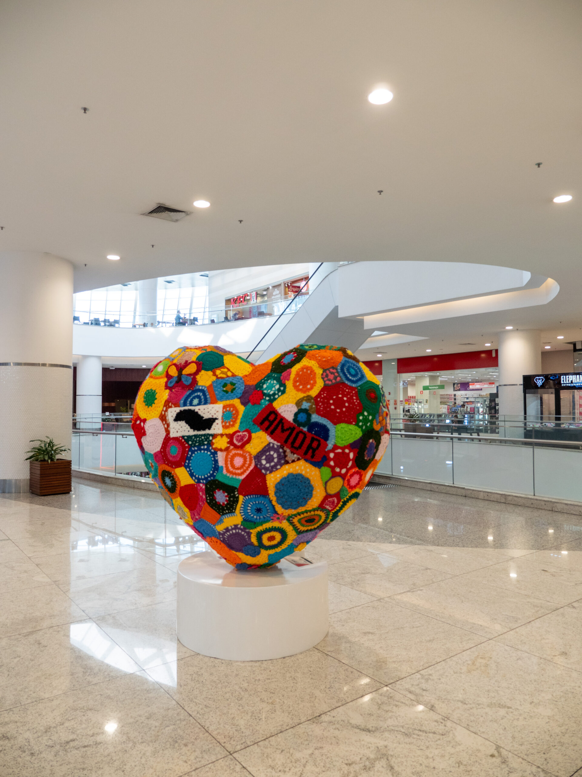 A ‘Art of Love’ celebra o espírito paulistano, reunindo talentosos artistas em uma mostra que estará em cartaz até 30 de setembro. Cada coração é uma expressão da arte e da essência vibrante de São Paulo. Embora os artistas tenham usado técnicas variadas, os corações patrocinados pela Pingouin se destacam por suas técnicas artesanais, como crochê e tufting, que trazem um toque de delicadeza e ancestralidade para a exposição.