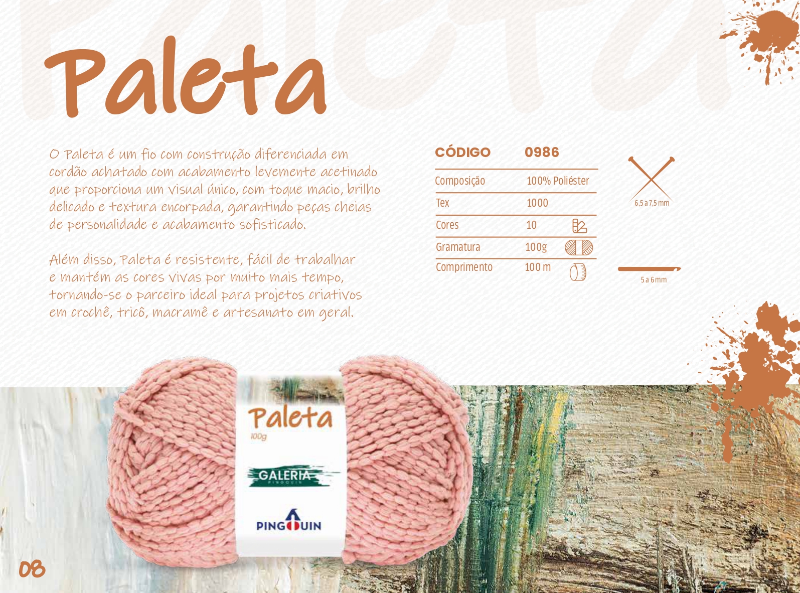 Com estrutura em cordão achatado e acabamento levemente acetinado, o Paleta cria peças com presença, daquelas que chamam atenção sem esforço.
