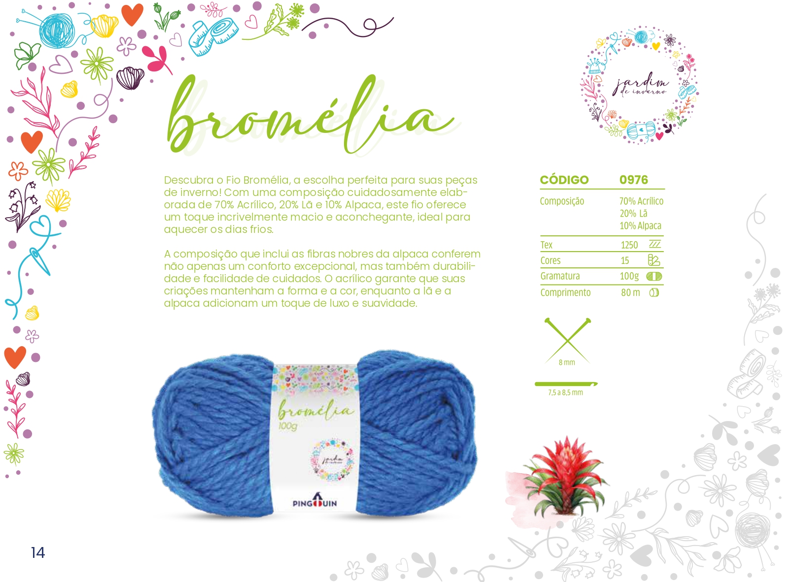 Pensado para dias frios, o fio Bromélia combina acrílico, lã e alpaca para entregar calor, suavidade e durabilidade.