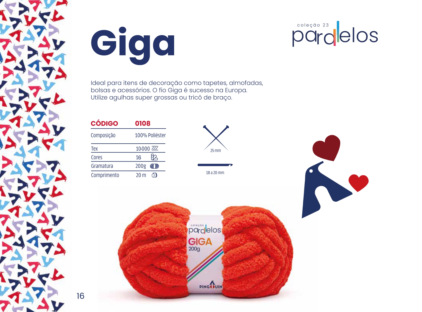 O fio Giga conquistou corações e agulhas e está de volta! É um produto de espessura perfeita para peças estilo chunky, tricô de dedo, maxi tricô e o que mais sua criatividade quiser. Vai bem em itens de vestuário e decoração como mantas, almofadas, bolsas e acessórios.