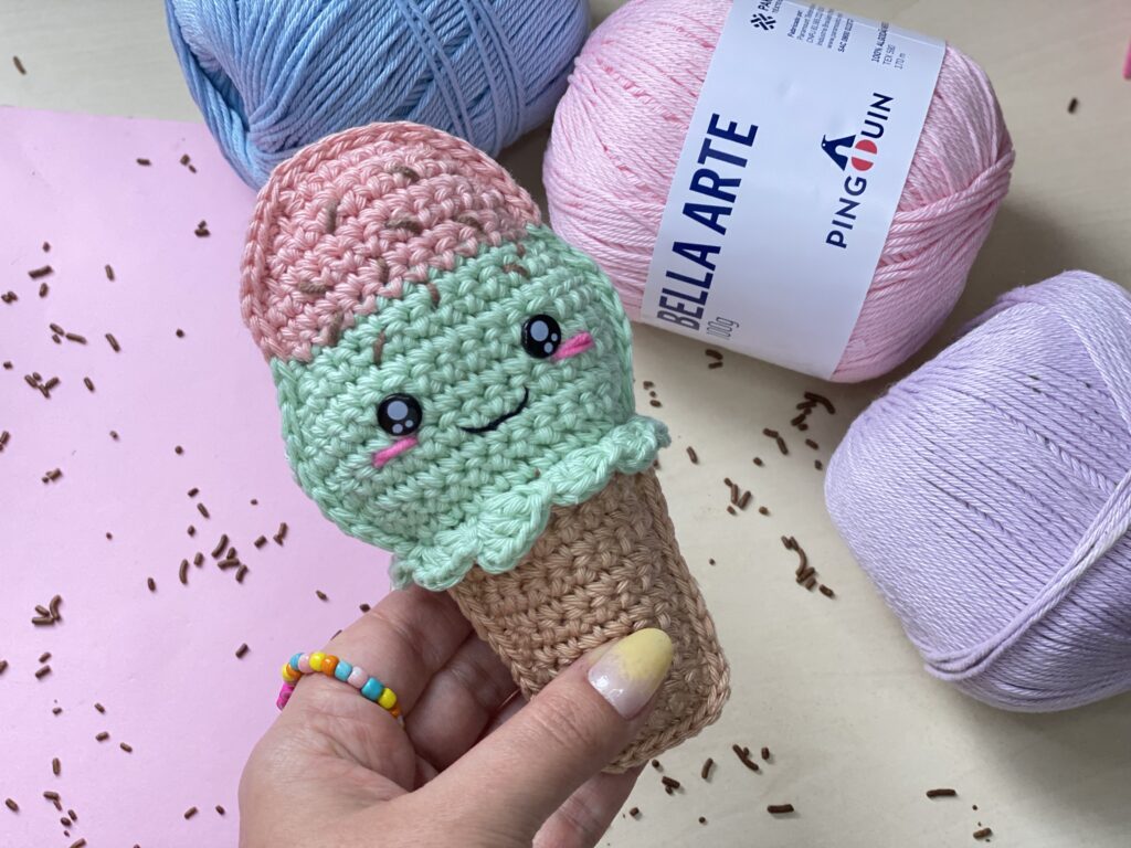 Mas… se ainda faltar sorvete em sua vida nesse dia, aqui no blog temos mais uma receita de amigurumi com essa temática, é o Sorvete Bubballo, feito com o fio Ballon Amigo.