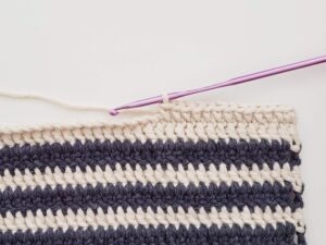 – Faça 1 ponto alto na quarta correntinha a partir da agulha, já conduzindo o fio da cor 9588.