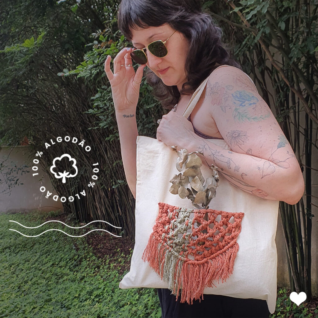 Aprenda a fazer um charmoso aplique para ressignificar aquela ecobag de algodão cru que com certeza você tem guardada em casa. A artesã Cris Lobato, parceira aqui do ateliê Pingouin, criou esse Bolso para ecobag na técnica do Macramê com fio o Ateliê Natureza!