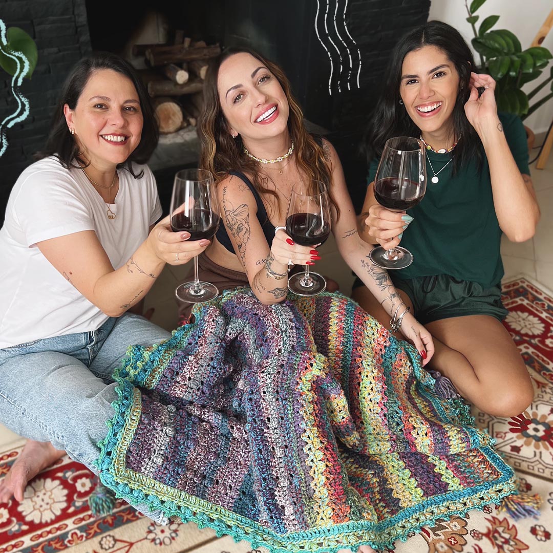 Reunimos 3 amigas e crocheteiras de mão cheia para criar uma peça única feita com alguns novelos do novo fio BORA BORA da coleção 2022 Volta ao Mundo com Fios Pingouin.