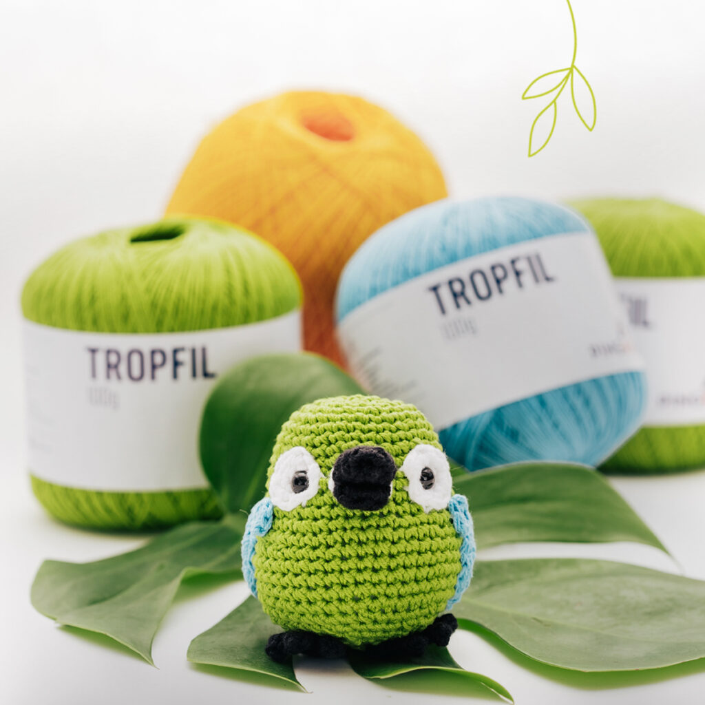 Para te conduzir por esse lindo universo das nuances tropicais, preparamos uma receita linda de viver, inspirada na ararinha-azul do filme Rio, de Carlos Saldanha. Para essa criação exercitamos nossa brasilidade e pensamos em algo “fora da caixa”, usamos o Tropfil, um fio 100% algodão perfeito para peças fresquinhas de verão, mas que nesse caso se transformou nesse fofo amigurumi.